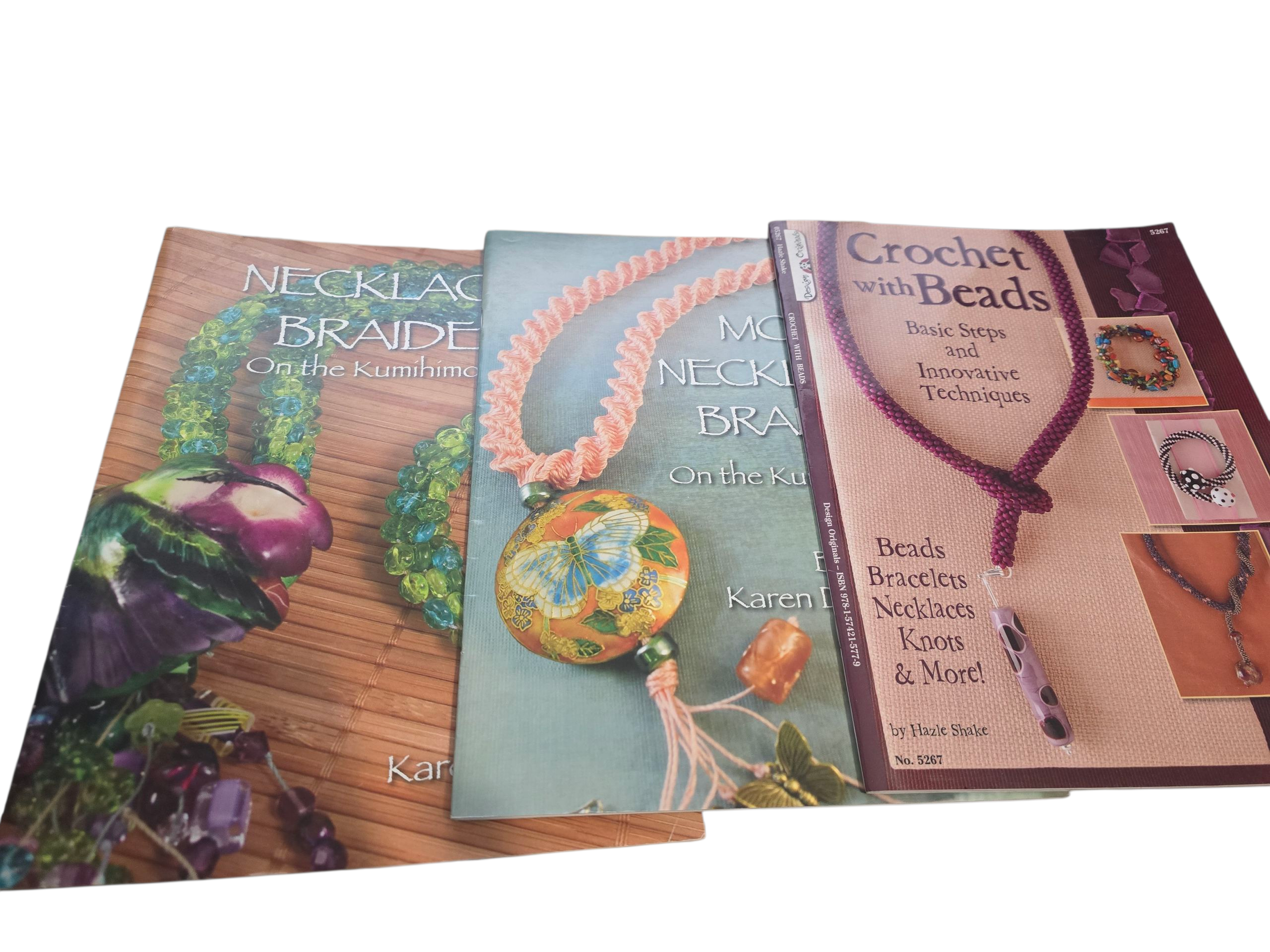 Secondhand in good condition - Set of 3 - Crochet with Beads by Hazle Shake, Necklaces braided on the Kumihimo Disk & More Necklaces braided on the Kumihimo Disk by Karen DeSousa